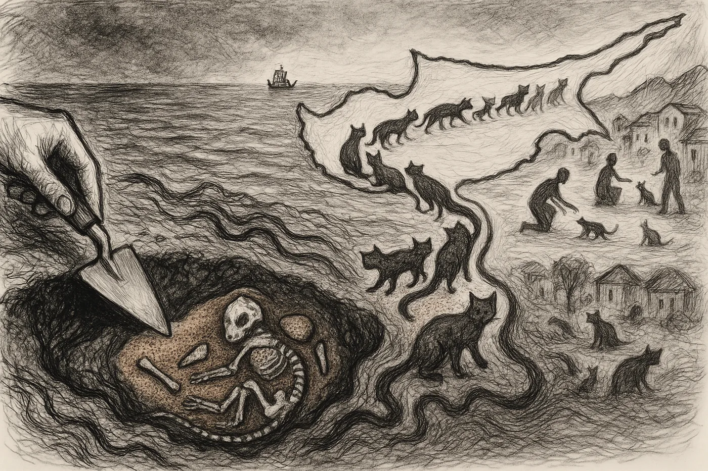 Long before Egypt's pyramids rose, someone on Cyprus's southern coast was buried in a carefully prepared grave. Beside them: the complete skeleton of an eight-month-old cat, deliberately interred with shells, stone tools, and ochre.